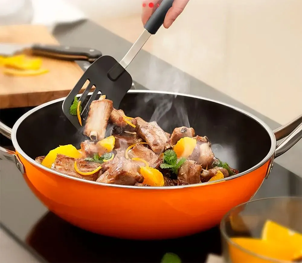Идеально подходит для сковород и кастрюль с антипригарным покрытием.