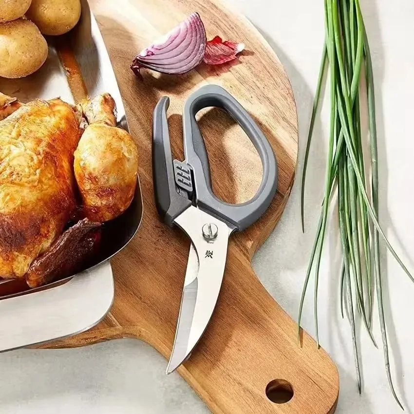 Ножницы для разделки птицы обладают прочной конструкцией и безопасными ручками с антискользящим покрытием. Они идеально сбалансированы и гарантируют безопасность во время работы. Изогнутая форма рабочего полотна специально разработана для удобства в применении. Режущая часть изготовлена из нержавеющей стали Cromargan, отличающейся долговечностью, устойчивостью к запахам и особой прочностью.