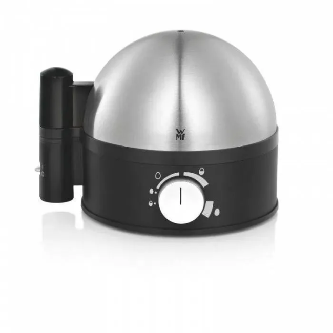 Электрическая яйцеварка Stelio от WMF способна приготовить от 1 до 7 яиц одновременно. В комплект входит мерный стаканчик с встроенной иглой для прокола скорлупы. Устройство выполнено из нержавеющей стали Cromargan и пластика. Желаемая степень приготовления устанавливается с помощью регулятора и шкалы со значениями. В комплекте переходник на европейскую вилку.
